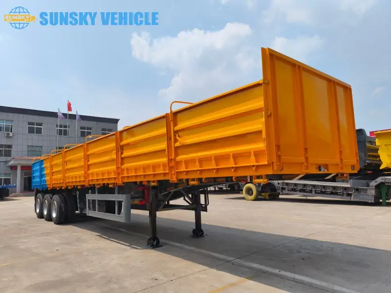 A drop side trailer, also known as a side wall trailer or sideboard semi-trailer, is a type of semi-trailer characterized by its removable or collapsible side panels. The primary difference from a standard flatbed is its enhanced versatility. While a flatbed trailer is only suitable for carrying large, single items that can be strapped down, a drop-side trailer can easily be converted. With the side walls and tailgate in place, it can securely transport bulk cargo like bags of cement, grain, or sand. By dropping or removing the side walls, it transforms into a flatbed trailer, allowing for the easy loading and transport of oversized goods and equipment from the side. This versatility makes the drop side semi-trailer a highly adaptable asset for a wide range of industries.