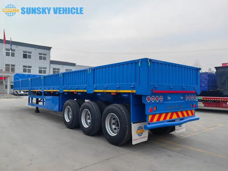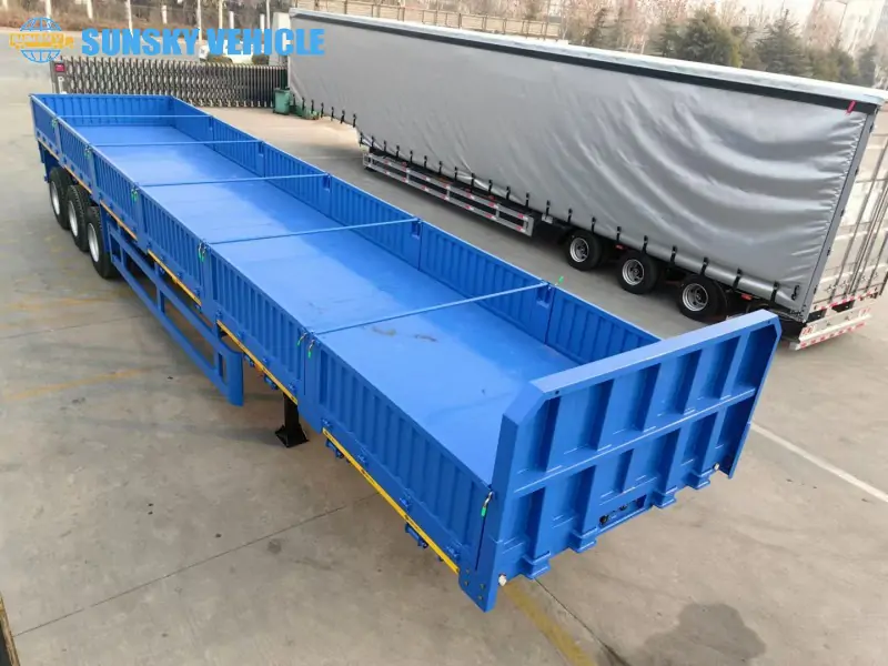 A drop side trailer, also known as a side wall trailer or sideboard semi-trailer, is a type of semi-trailer characterized by its removable or collapsible side panels. The primary difference from a standard flatbed is its enhanced versatility. While a flatbed trailer is only suitable for carrying large, single items that can be strapped down, a drop-side trailer can easily be converted. With the side walls and tailgate in place, it can securely transport bulk cargo like bags of cement, grain, or sand. By dropping or removing the side walls, it transforms into a flatbed trailer, allowing for the easy loading and transport of oversized goods and equipment from the side. This versatility makes the drop side semi-trailer a highly adaptable asset for a wide range of industries.