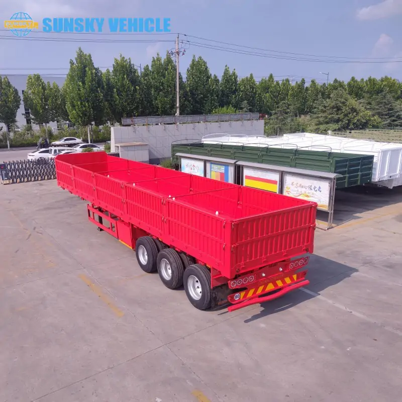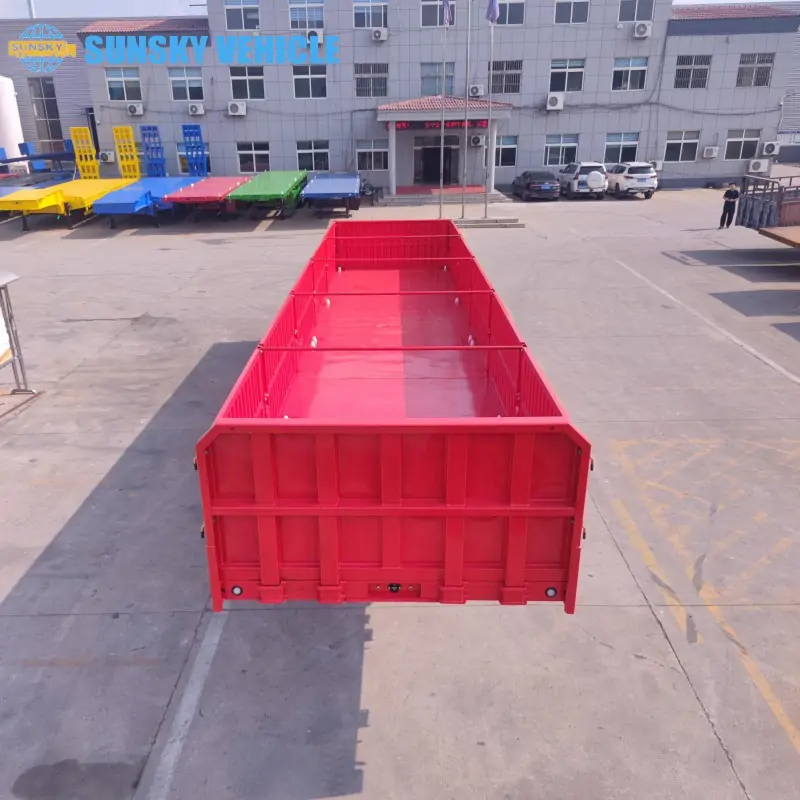 A drop side trailer, also known as a side wall trailer or sideboard semi-trailer, is a type of semi-trailer characterized by its removable or collapsible side panels. The primary difference from a standard flatbed is its enhanced versatility. While a flatbed trailer is only suitable for carrying large, single items that can be strapped down, a drop-side trailer can easily be converted. With the side walls and tailgate in place, it can securely transport bulk cargo like bags of cement, grain, or sand. By dropping or removing the side walls, it transforms into a flatbed trailer, allowing for the easy loading and transport of oversized goods and equipment from the side. This versatility makes the drop side semi-trailer a highly adaptable asset for a wide range of industries.